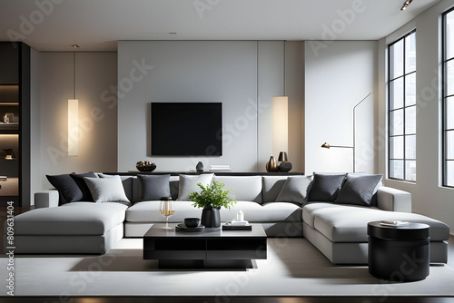 Fototapeta premium Minimalist living room. furniture has a modern and minimalist design, with a sofa