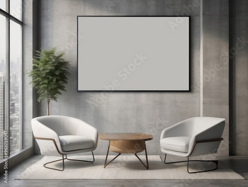 Fototapeta premium Minimalist Living Room Interior with Blank Picture Frame