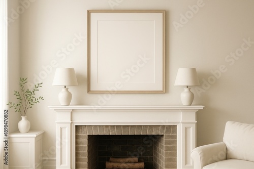 © Rawpixel.com, Naklejka premium Minimalist living room with fireplace.