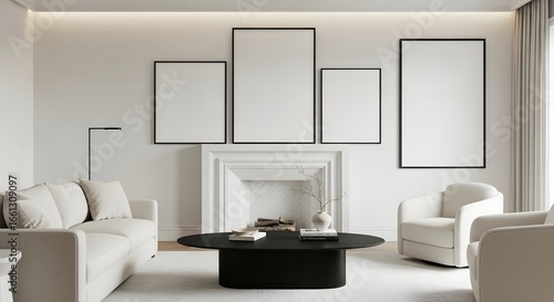 © habib, Obraz premium Minimalist Living Room with Fireplace and Neutral Decor