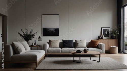 Fototapeta premium Minimalist Living Room with Scandinavian Design Light colors and simple furniture