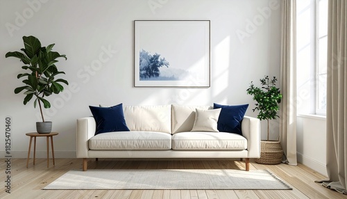 Fototapeta premium 自然光が差し込むミニマルなリビング空間 Minimalist living room with soft natural light and...