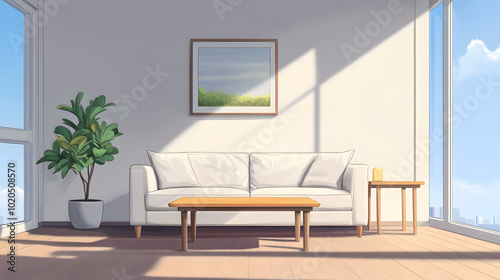 © Siwanart, Fototapeta premium Minimalist Living Room with Sunlight and Window View