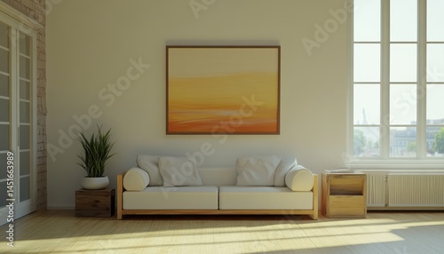 Fototapeta premium Minimalist living room with warm tones and natural light