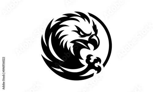 © Mamunur, Naklejka premium Minimalist logo A Eagle head with Vector silhouette illustration