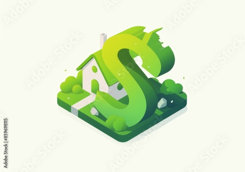 Obraz premium Minimalist Logo with Letter S and Green House, Dollar Sign, White Background