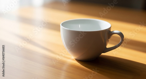 Obraz premium Minimalist macro close-up of white ceramic cup on wooden surface
