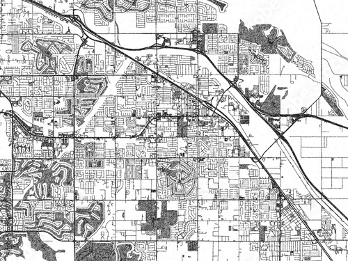 Fototapeta premium Minimalist map of Indio, California, illustrated in black and white with a...