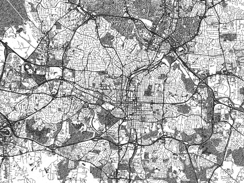 Naklejka premium Minimalist map of Raleigh North, Carolina, illustrated in black and white...