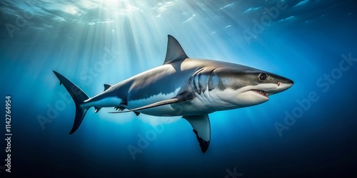 Fototapeta premium Minimalist Marine Predator Fish Photography: Great White Shark, Barracuda, Piranha, Ocean Predator, Underwater Hunter