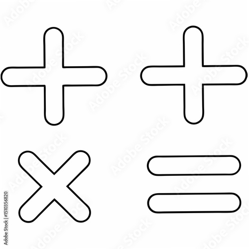 Obraz premium Minimalist mathematical symbols plus multiplication equality on white...
