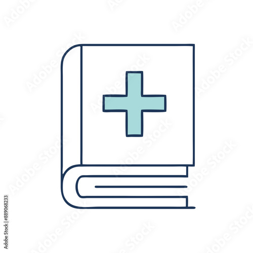 Fototapeta premium Minimalist Medical Book Icon, Blue and White, Educational Symbol with Copy Space