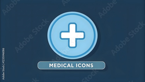 Fototapeta premium Minimalist Medical Icon White Cross on Blue Circular Design V1