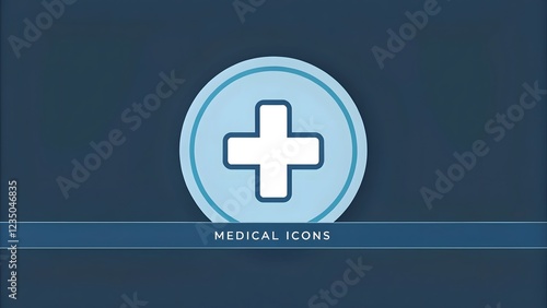 Obraz premium Minimalist Medical Icon White Cross on Blue Circular Design V5