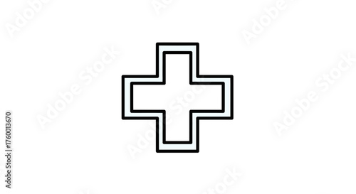© BENI, Fototapeta premium Minimalist Medical Symbol Design Featuring White Cross Against Black Background