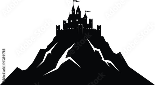 Fototapeta premium Minimalist Medieval Castle Mountain Silhouette