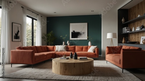 Fototapeta premium minimalist modern living room with a bold accent wall