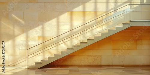 © Purple_Lamp, Fototapeta premium Minimalist Modern Staircase in Sunlit Interior with Geometric Shadows