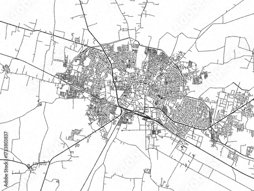© W&S Stock, Fototapeta premium Minimalist monochrome city map of Parbhani, India, illustrated with urban detail.