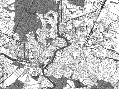 © W&S Stock, Fototapeta premium Minimalist monochrome city map of Vinnytsya, Ukraine, illustrated with urban detail.