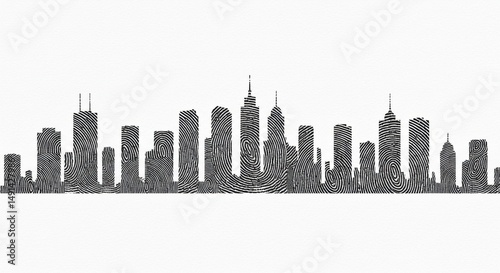 Naklejka premium Minimalist Monochrome Line Drawing of World Skyline with Optical Effect