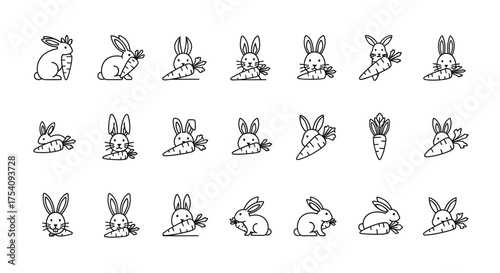 Fototapeta premium Minimalist monochrome rabbit and carrot icons symbolizing spring and easter...