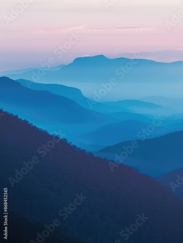 © Serhii, Fototapeta premium Minimalist Mountain. Beautiful Layers of Australian Nature Mountains at Dusk