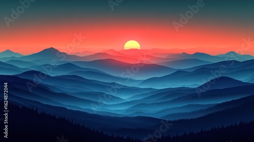 © aan, Fototapeta premium Minimalist mountain landscape vector with pastel gradients and clean lines