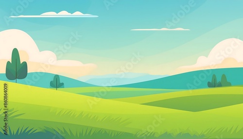 Fototapeta premium Minimalist mountain scene with trees, flat design.