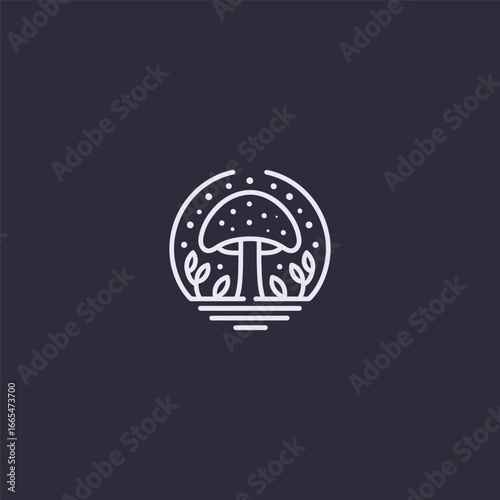 © Leyde, Obraz premium Minimalist mushroom line logo. Perfect for organic food, natural products, and health.
