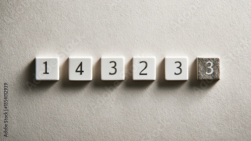 Obraz premium Minimalist numeric tiles on textured surface - concept of counting and sequence, Brain Teaser Month