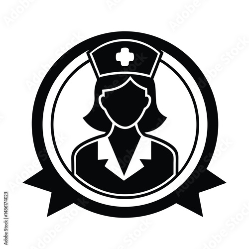© Pramila, Fototapeta premium Minimalist Nurse Logo Vector Illustration of a Nurse in a Circle with a Ribbon