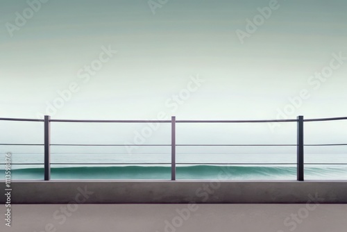 Naklejka premium Minimalist Ocean Pier with Open Sky and Railing View