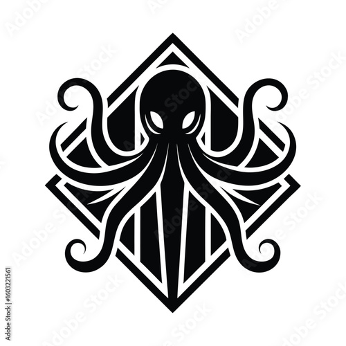 Fototapeta premium Minimalist octopus logo with geometric frame graphic animal