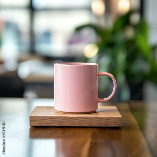 Fototapeta premium Minimalist Office with Pink Mug on Wooden Base