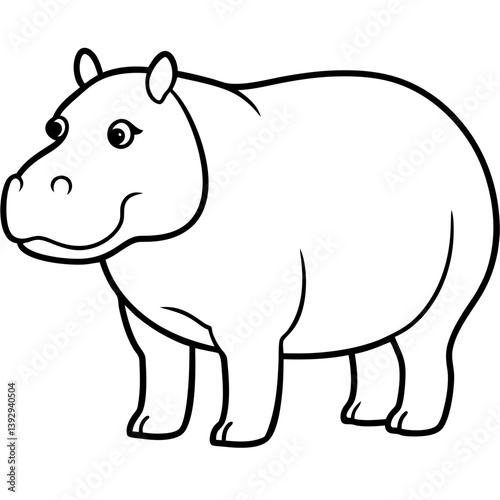 © Parvin, Obraz premium Minimalist One-Line Hippo Art Vector