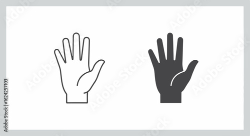 Fototapeta premium Minimalist open hand gesture icons, one outline and one solid black silhouette.