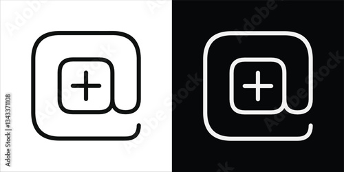 Obraz premium Minimalist Outline Art of At Symbol with Plus Sign Variations