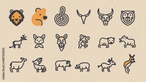 Fototapeta premium Minimalist outline icons of various animals stock photo --ar 16:9 --raw --v 6...