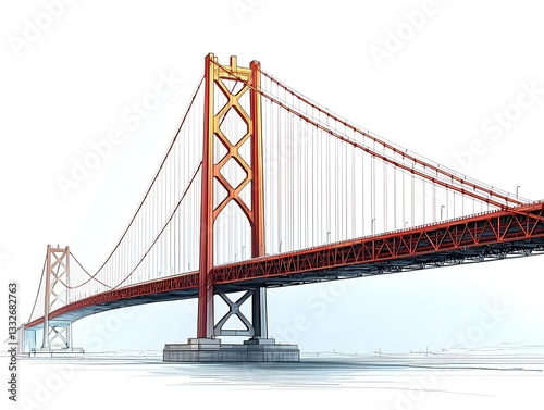 Naklejka premium Minimalist Outline of Elegant Suspension Bridge Against Clean White Background