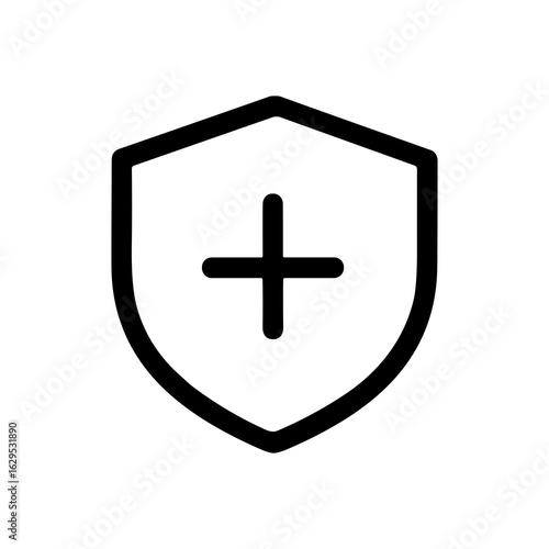 Fototapeta premium Minimalist Outline Rounded Shield with Plus Symbol Sign Shape Icon