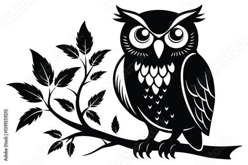© Shipon, Fototapeta premium Minimalist Owl Silhouette on Branch, Black and White Art Style Design
