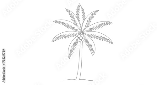 © Anisah, Obraz premium Minimalist Palm Tree Illustration in Gray Outline Style for Tropical Designs