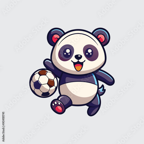 Naklejka premium Minimalist Panda Character with Football – Sport Animal Clipart