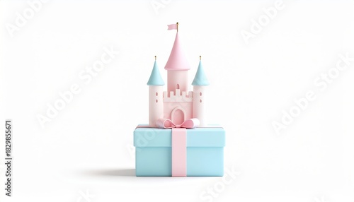 © madu, Obraz premium Minimalist Pastel Castle on Gift Box