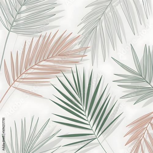 © walisearch, Fototapeta premium Minimalist Pastel Palm Leaves Pattern on Light Background