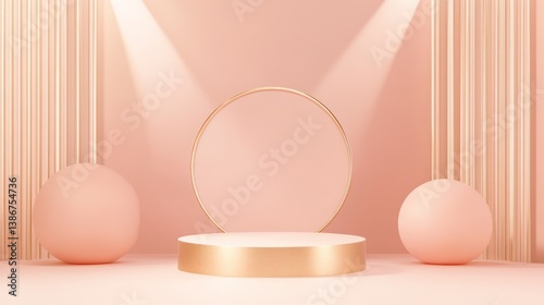 © ronal, Fototapeta premium Minimalist pastel pink product display