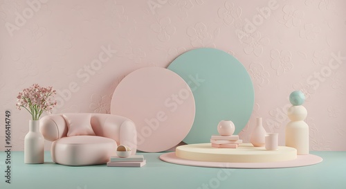 © Eko, Fototapeta premium Minimalist Pastel Room with Embossed Gardenia Textures