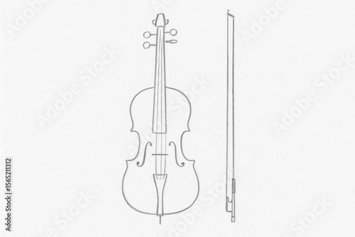 Obraz premium Minimalist Pencil Sketch of a Violin with a Bow
