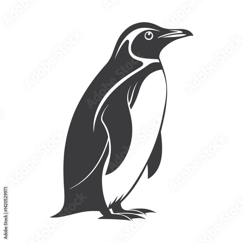 Naklejka premium Minimalist Penguin Silhouette – Bold Black & White Side Profile Design